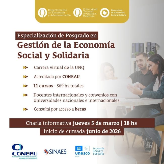 ¿Querés fortalecer herramientas de gestión, con una mirada crítica, territorial y comprometida con el desarrollo? ¿Trabajás o te interesa la Economía Social y Solidaria? 📣 ¡Charla informativa! Jueves 5/3, 18hs https://forms.gle/c9jE121wEPY5UDWJ9 💡Convenio con la Federación de Mutuales Regional La Plata – consultanos por acceso a becas 📅 Inscripciones: 2 al 30 de marzo de 2026…