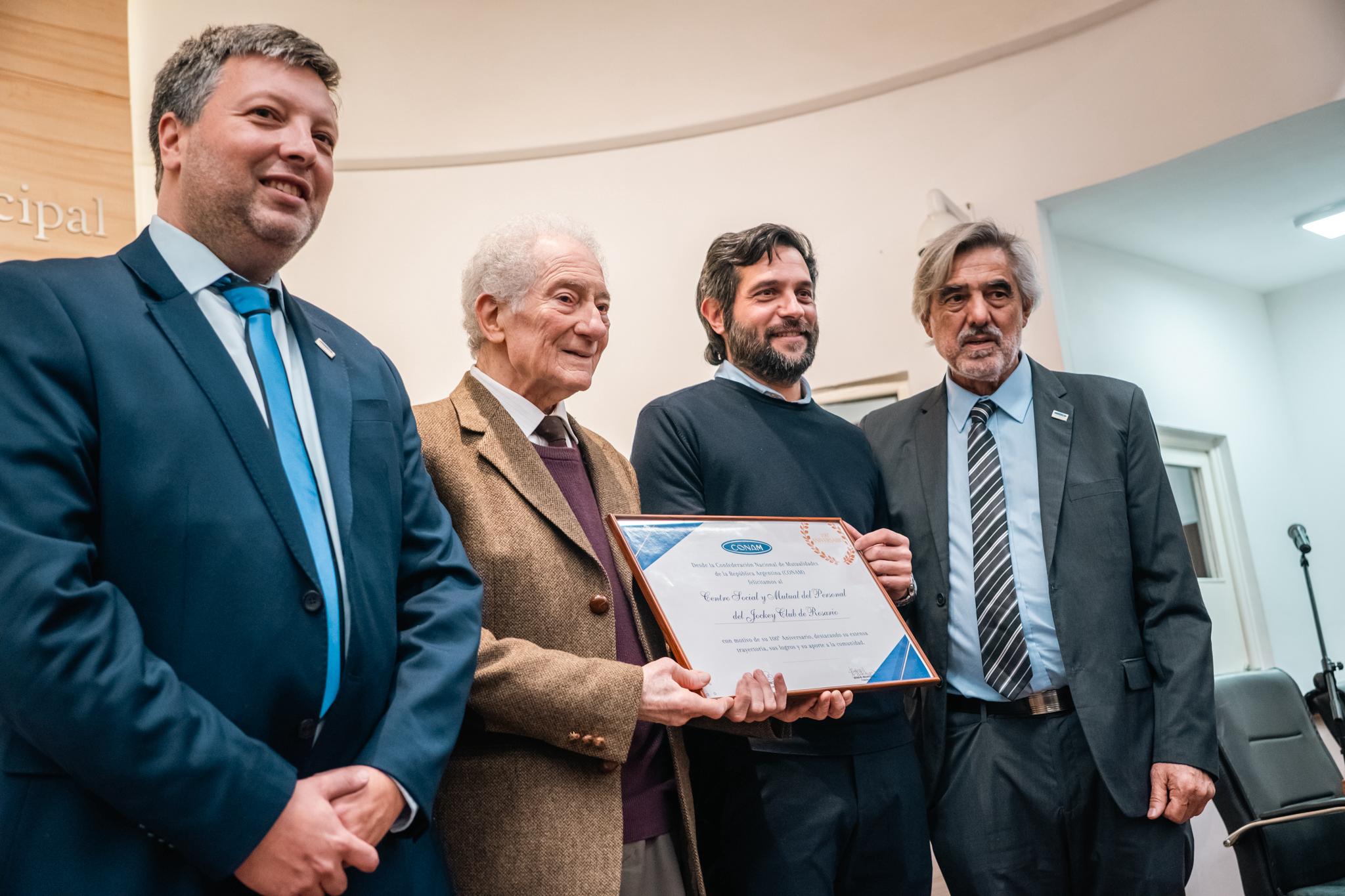 El encuentro se llevó a cabo en el recinto del Consejo Municipal de Rosario, donde se rindió homenaje al Centro Social y Mutual del Personal del Jockey Club de Rosario, al cumplirse 100 años de su fundación —el 28 de mayo de 1925—. La distinción fue promovida por la Federación Santafesina y contó con el acompañamiento de concejalas y concejales locales, autoridades mutuales, dirigentes gremiales y referentes de la comunidad.